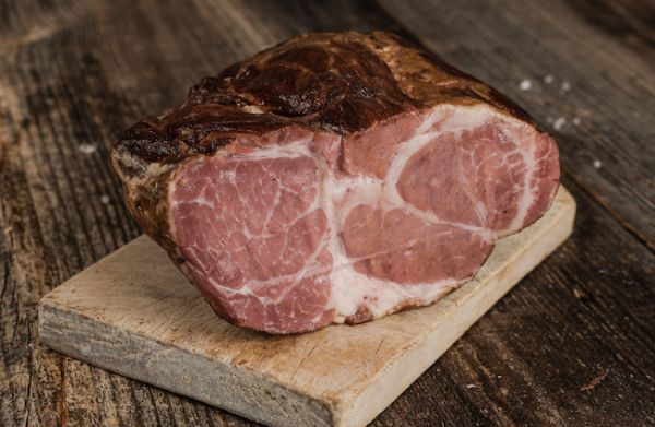 Swojski, wiejski baleron. Kruchy baleron z karkówki wieprzowej. Naturalna wędlina wędzona w naturalnym dymie i parzona. Ręcznie robiony. Idealny na kanapki, czy imprezy lub święta.